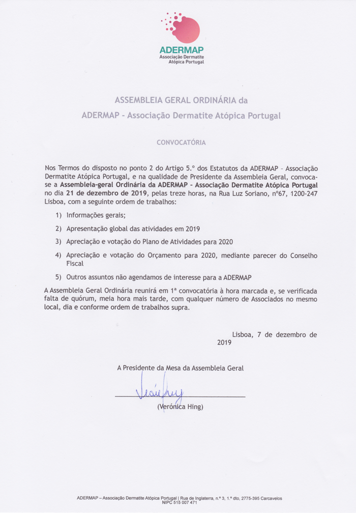 » Convocatória para Assembleia Geral Ordinária da ADERMAP