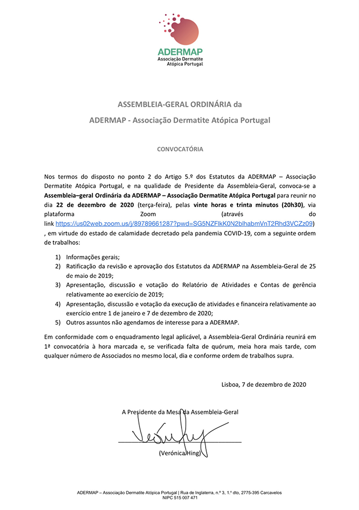 Convocatória Assembleia-Geral Ordinária ADERMAP